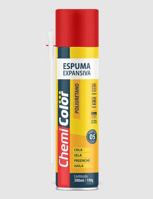 A ESPUMA DE POLIURETANO EXPANSIVA CHEMICOLOR É INDICADA PARA VEDAÇÃO E ISOLAMENTO TÉRMICO E ACÚSTICO, IDEAL PARA SELAR BURACOS, RACHADURAS E FRESTAS.