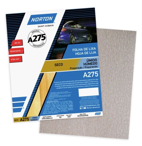 A FOLHA DE LIXA NOFIL A275 DE GRÃO 320 É UMA LIXA DE PAPEL COM GRÃO ÓXIDO DE ALUMÍNIO, CONHECIDA COMO LIXA CHAMPAGNE, UM DOS BESTSELLERS DA NORTON. INDICADA PARA OPERAÇÕES DE LIXAMENTO NA PREPARAÇÃO DE SUPERFÍCIES, LIXAMENTO A SECO DE MASSAS
