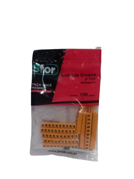 ANILHA DE ENCAIXE PARA FIOS NÚMERO 6 COM 100 UNIDADES SFOR