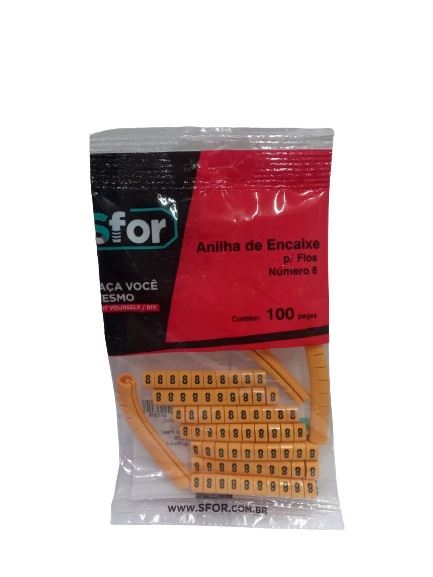 ANILHA DE ENCAIXE PARA FIOS NÚMERO 8 COM 100 UNIDADES SFOR