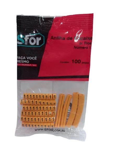 ANILHA DE ENCAIXE PARA FIOS NÚMERO1 COM 100 UNIDADES SFOR