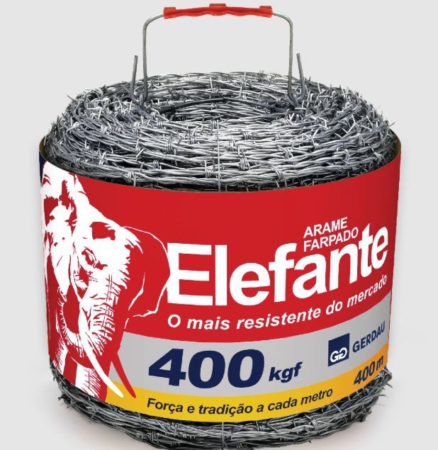 ARAME ELEFANTEDISPONÍVEL EM ROLOS DE 250M E 400M, O ARAME FARPADO ELEFANTE POSSUI CARGA MÍNIMA DE RUPTURA DE 400KGF, GALVANIZAÇÃO LEVE, DIÂMETRO DE 2,2MM E TORÇÃO CONTÍNUA. SUAS ESPECIFICAÇÕES TÉCNICAS O TORNAM UMA ESCOLHA PERFEITA PARA PROJ