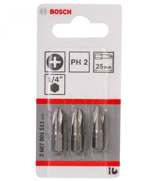 BITS PHILLIPS PARAFUSO PH2 25MM 1/4 COM 3 UNIDADE BOSCH