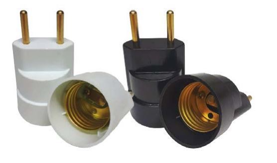 BOCAL ADAPTADOR PLUG MACHO E27 TERMOPLASTICO PRETO FERTAK
