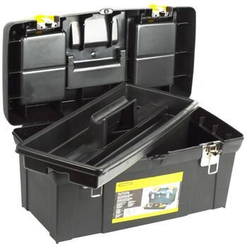 CAIXA PARA FERRAMENTA 19 COM ORGANIZADO EXTRA STANLEYRECURSOS E BENEFÍCIOS:*ALÇAS RESISTENTES*PORTA CADEADO*COMPARTIMENTO PARA PEÇAS PEQUENAS*FECHO COM TRAVAS EM METAL*BANDEJA SUPERIOR REMOVÍVEL*SUPORTA 100KG NA PARTE SUPERIOR*