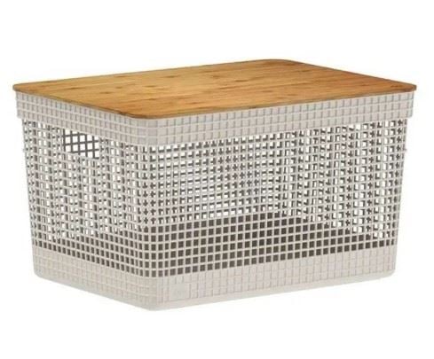 CESTO ORGANIZADOR GRID COM TAMPA BAMBU 20L BEGE O.U