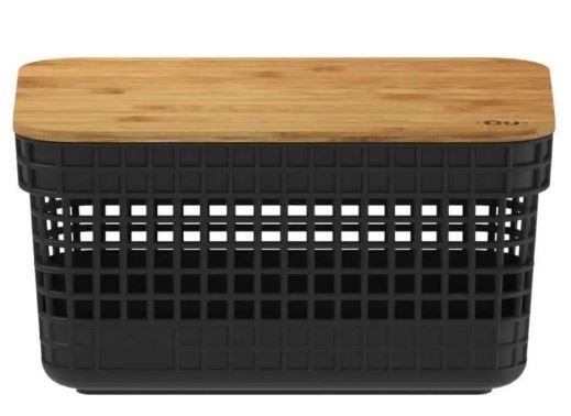 CESTO ORGANIZADOR GRID COM TAMPA BAMBU 2,5L PRETO O.U