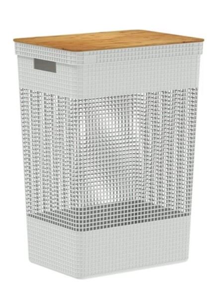 CESTO ROUPAS GRID COM TAMPA BAMBU 49L BRANCO O.U