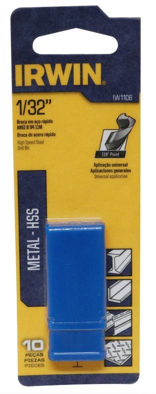 BROCA AÇO RAPIDO 1/32'X35MM ANSI C/10UN IRWIN