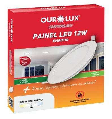 PLAFON LED EMBUTIR REDONDO 12W 6500K BRANCO OUROLUX