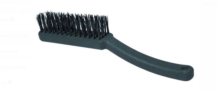 ESCOVA DE AÇO 4 FILEIRAS COM CABO DE PLÁSTICO ROMA