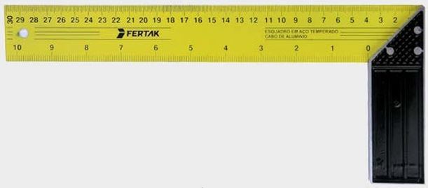 ESQUADRO COM CABO ALUMINIO 12 30CM FERTAKAÇO TEMPERADO COM CABO DE ALUMÍNIOGRADUAÇÃO: MM / POL.PARA MARCAÇÃO DE PEÇAS EM ÂNGULOS DE 45° E 90°