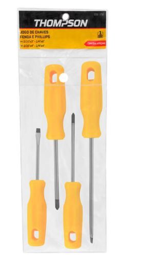 JOGO CHAVE DE FENDA/PHILLIPS COM 4 CABO AMARELO THOMPSON