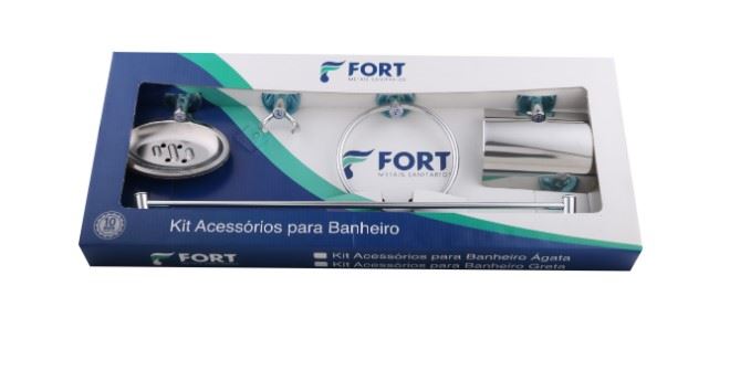 KIT PARA BANHEIRO AGATA CROMADO 5 PEÇAS FORT METAIS