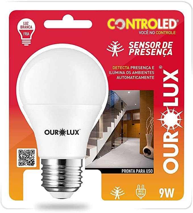 LAMPADA CONTROLED COM SENSOR DE PRESENÇA 9W 6500K OUROLUX