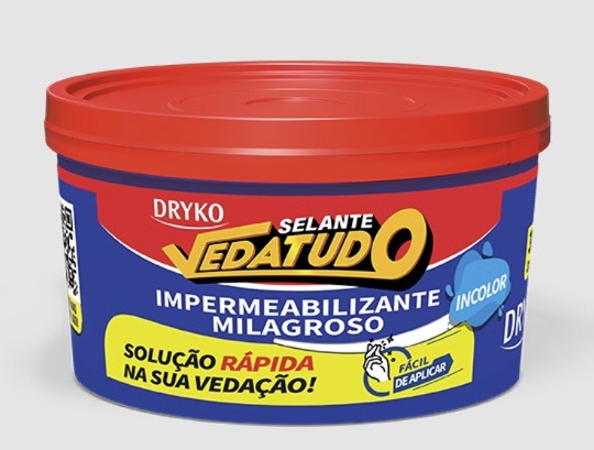 O DRYKO IMPERMEABILIZANTE MILAGROSO VEDATUDO É UM IMPERMEABILIZANTE INCOLOR DE ALTO DESEMPENHO,MONOCOMPONENTE DE BASE ACRÍLICA PURA MAIS COPOLÍMEROS (RESINAS ESPECIAIS DE ALTO DESEMPENHO). À PROVA DÁGUA COM RESISTÊNCIA ÀS INTEMPÉRIES E RÁPIDA
