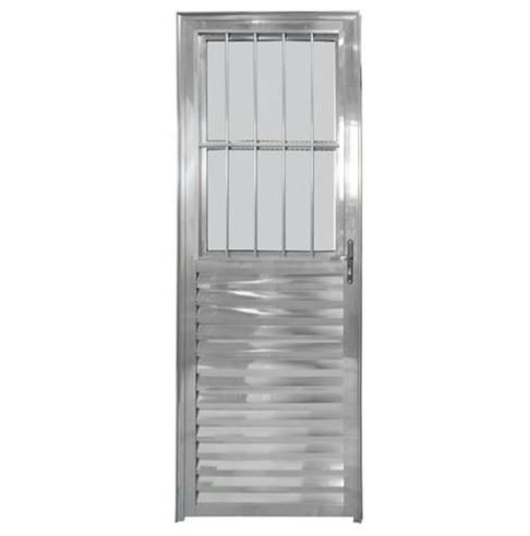PORTA DE GIRO ABERTURA PARA A ESQUERDA EM ALUMINIO NATURAL 80X210 CM COM GRADE E POSTIGO VIDRO LISO DE 4 MM