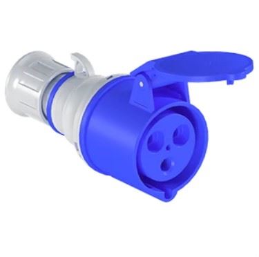 TOMADA INDUSTRIAL DE ACOPLAMENTO, 2P+T, 32A, 6H, 200/250VCA, 50/60HZ, AZUL, IP44 (E3256)