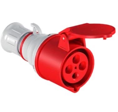 TOMADA INDUSTRIAL DE ACOPLAMENTO, 3P+T, 32A, 6H, 380/440VCA, 50/60HZ, VERMELHA, IP44 (E4256)