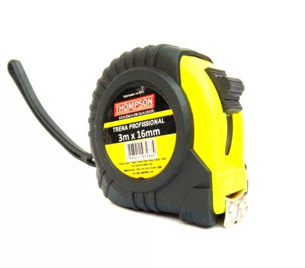TRENA EMBORRACHADACAIXA ANATÔMICA EM ABS COM BORRACHA TERMOPLÁSTICA, FITA EM AÇO COM PINTURA FOSCA ANTIREFLEXO, GRADUAÇÃO EM MILÍMETROS E POLEGADAS, SISTEMA DE TRAVA, E IMÃ NA PONTA DA FITA MÉTRICA.