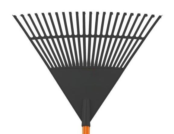 VASSOURA JARDIM PLASTICA PRETA 22 DENTES COM CABO LARANJA DHON
