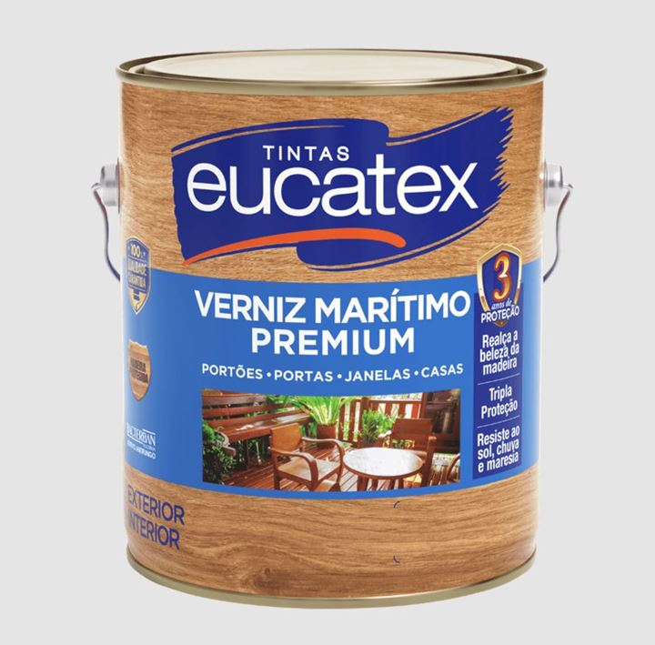 VERNIZ MARÍTIMO BRILHANTE BASE SOLVENTE EUCATEX 3,6 L INCOLORCÓD: 9000193.01O EUCATEX VERNIZ MARÍTIMO PREMIUM É UM PRODUTO DE FÁCIL APLICAÇÃO, BOM ALASTRAMENTO E ADERÊNCIA, REALÇANDO O ASPECTO NATURAL DA MADEIRA, PROPORCIONANDO ACABAMENTOS