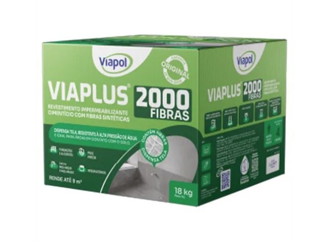 VIAPLUS 2000 FIBRASARGAMASSA IMPERMEABILIZANTE INDUSTRIALIZADA, SEMIFLEXÍVEL, BICOMPONENTE (A+B), À BASE DE CIMENTOS ESPECIAIS, ADITIVOS MINERAIS, POLÍMEROS DE EXCELENTE CARACTERÍSTICA IMPERMEABILIZANTE, E A INCORPORAÇÃO DE FIBRAS SINTÉTICA